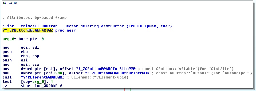 The vulnerability we discovered was also an use-after-free vulnerability (as is often the case with browser issues) that involved event handlers and some other miscellaneous Javascript constructs. The exploit I wrote bypassed ASLR through a forced memory disclosure and Data Execution Prevention through the usual ROP chain trickery. The actual exploit is non-trivial, so bear with me with me and expect some minimal shortcuts to be taken in the following explanation.